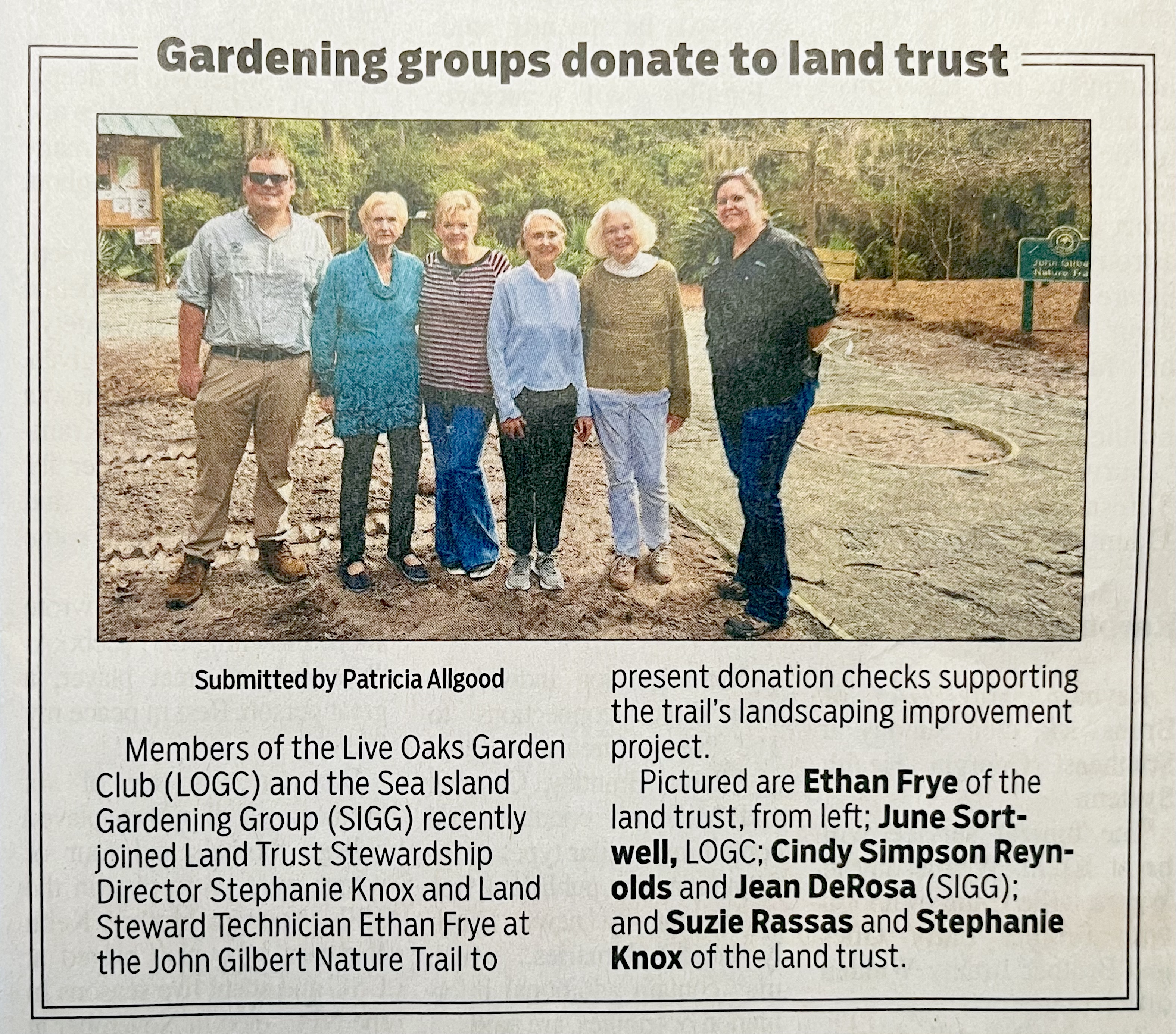 Live Oaks Garden Club has donated over $100,000 to civic beautification projects. We have partnered with Saint Simons Land Trust, The Sea Island Corporation,